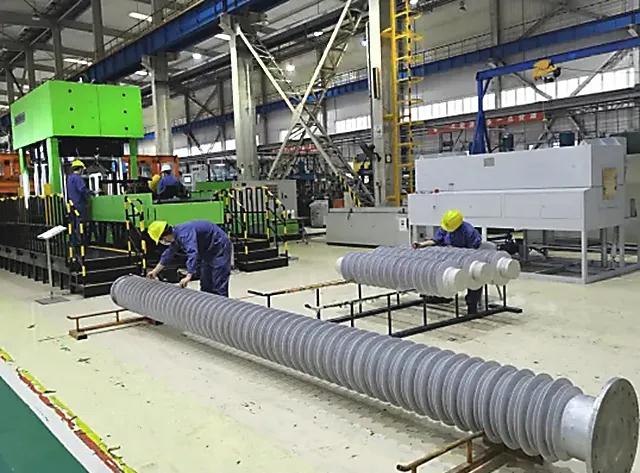10月28日,平高电气复合绝缘子生产车间内,机器轰鸣声此起彼伏,员工们干劲十足,全力保障白鹤滩-江苏特高压工程用复合绝缘子生产进度。据介绍,平高电气直流穿墙套管、直流支柱复合绝缘子和直流避雷器复合外套三种类型复合绝缘子产品在白鹤滩-江苏特高压工程中全部实现应用,其中±816kV支柱复合绝缘子,首次实现挂网应用。