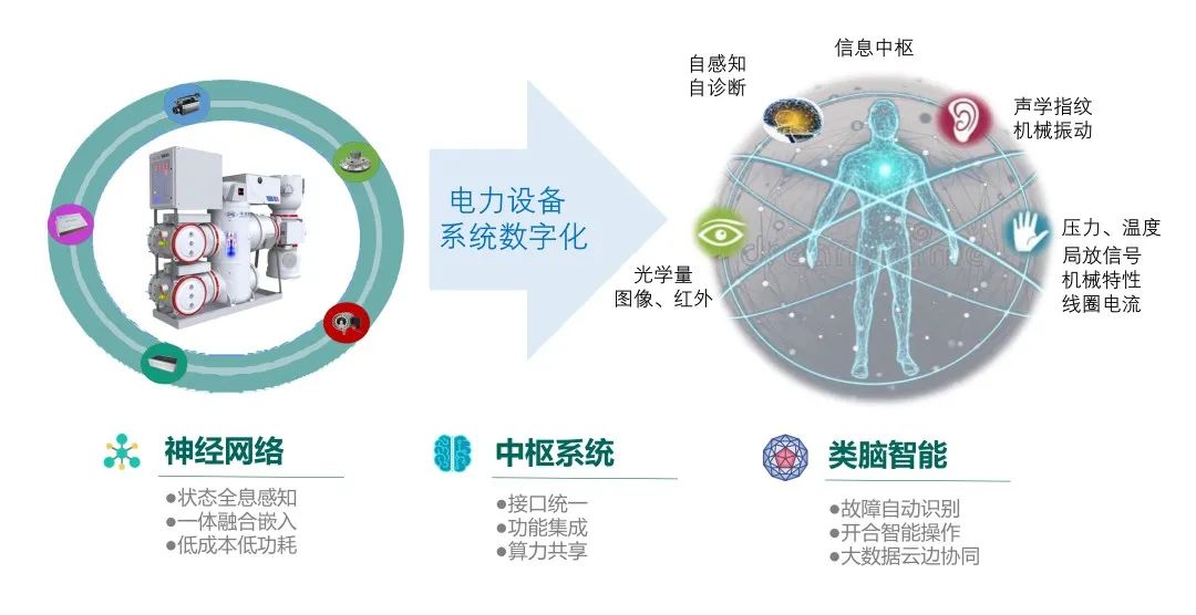 利用多种智能传感器,通过统一接口、数据模型的硬件平台“中枢系统”,实现设备SF6气体状态、机械状态、分合闸状态、绝缘状态、运行状态、环境状态等全感知。
