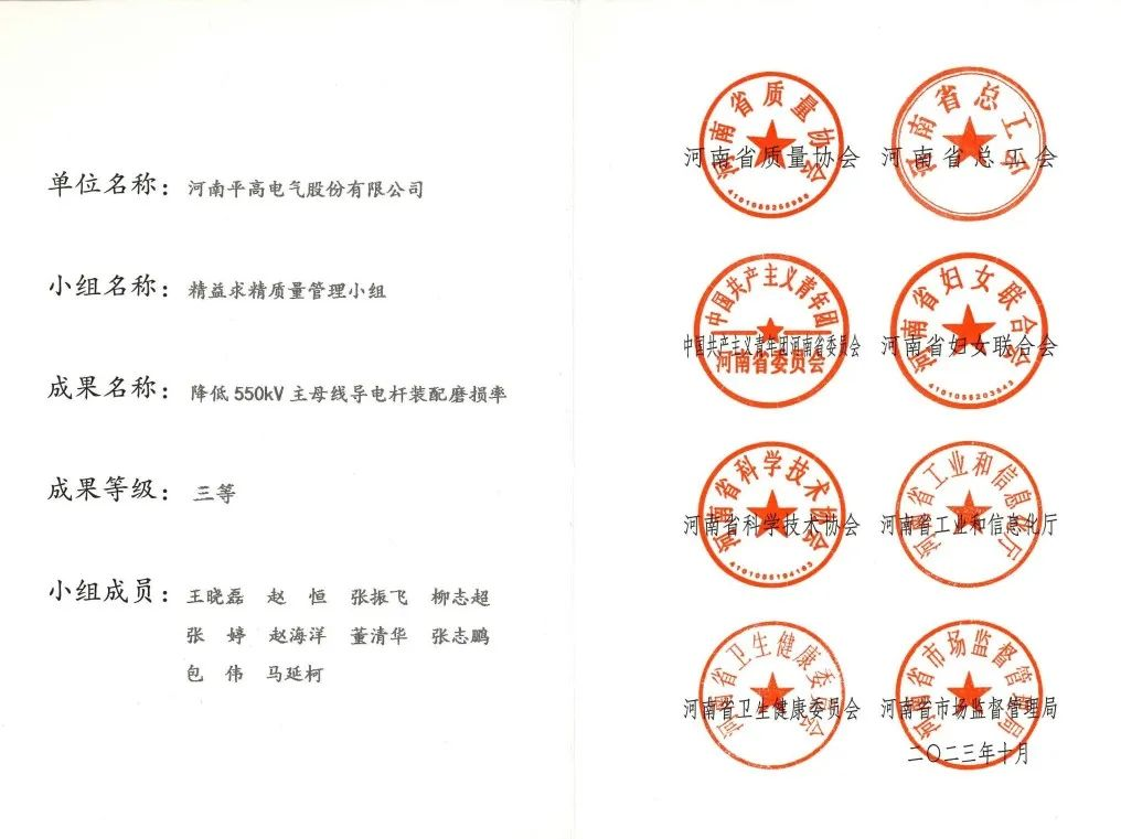 事业部完成的科技项目先后荣获“中国电气装备集团有限公司科技进步奖”二等奖1项、三等奖1项;“河南省电力科学技术奖”三等奖1项;“平高集团科技进步奖”二等奖3项、三等奖3项。
