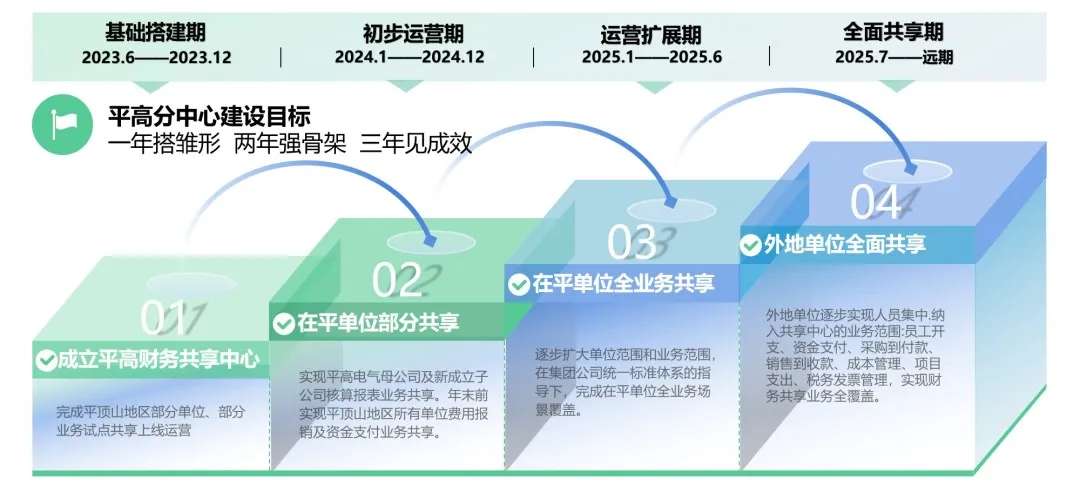 平高财务共享中心的成立,是贯彻落实国资委建设世界一流财务管理体系工作部署的有力举措,也是加快建设“3153”财务集约化管理体系的重要环节,更是推动平高财务数智化转型升级的关键路径,必将成为平高财务发展历史上的一个重要里程碑!