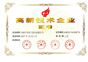 高新技术企业证书