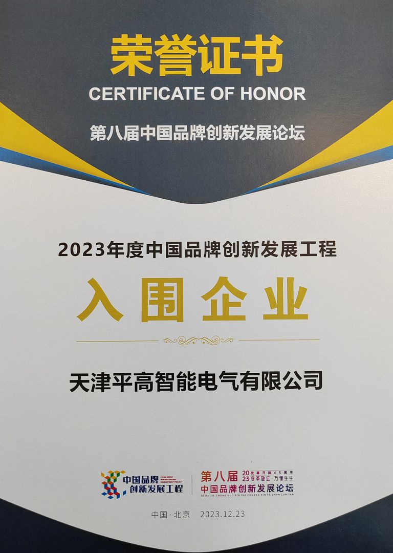 近日,平高电气所属天津平高智能电气有限公司应邀参加第八届中国品牌创新发展论坛,入围2023年度中国品牌创新发展工程。