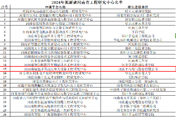近日,河南省发展和改革委员会发布的“2024年度拟新建河南省工程研究中心”名单公示结束,由平高电气牵头建设的“河南省绿色环保高压开关设备工程研究中心”成功获批,这标志着公司在科技体制改革、科技创新体系建设方面迈向一个新台阶。